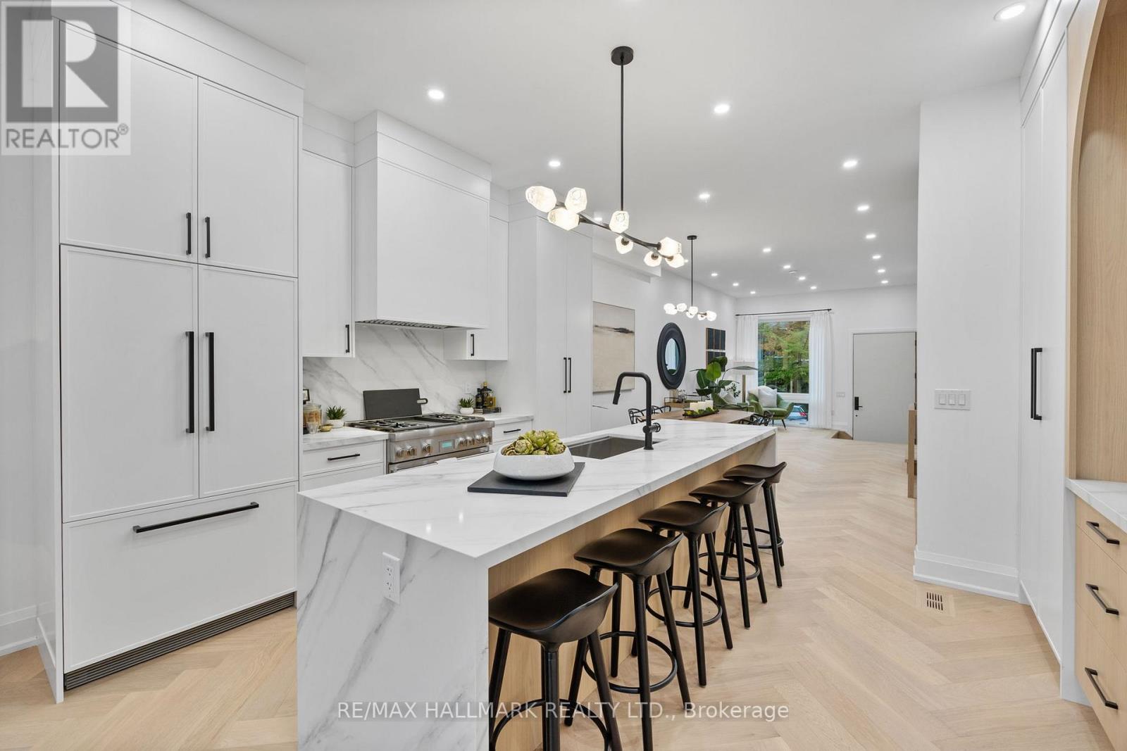 Tucked into a tree-lined North Riverdale street, this custom home blends thoughtful design with everyday comfort. Features include sunlit herringbone floors, a chef’s kitchen with hidden storage, 10-ft ceilings, and a cozy family room with walkout to a private yard. Upstairs: bright bedrooms, a luxe top-floor retreat, and a flexible lower-level suite. Laneway garage + parking. Steps to Riverdale Park, top schools, and the Danforth.